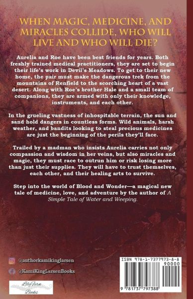 When magic, medicine, and miracles collide, who will live and who will die? Aurelia and Roe have been best friends for years. Both freshly trained medical practitioners, they are set to begin their life's work in Devil's Meadows. To get to their new home, the pair must make the dangerous trek from the mountains of Renfield to the scorching heart of a vast desert. Along with Roe's brother Hale and a small team of companions, they are armed with only their knowledge, instruments, and each other. In the grueling vastness of inhospitable terrain, the sun and sand hold dangers in countless forms. Wild animals, harsh weather, and bandits looking to steal precious medicines are just the beginning of the perils they'll face. Trailed by a madman who insists Aurelia carries not only compassion and wisdom in her veins, but also miracles and magic, they must race to outrun him or risk losing more than just their supplies. They will have to trust themselves, each other, and their healing arts to survive.