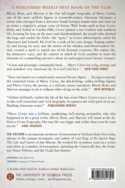 In 2010, Ted Geltner drove to Gainesville, Florida, to pay a visit to Harry Crews and ask the legendary author if he would be willing to be the subject of a literary biography. His health rapidly deteriorating, Crews told Geltner he was on board. ""Ask me anything you want, bud,"" Crews said. ""But you'd better do it quick.” The result is Blood, Bone, and Marrow.