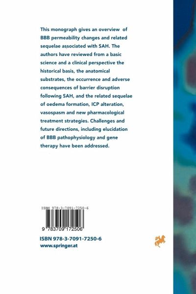 The Concept of the BBB: A Historical Perspective.- Anatomy of the BBB.- Pathophysiology of BBB.- Brain Oedema.- Breakdown of the BBB.- BBB Dysfunction after SAH.- Clinical Monitoring.- Neuroradiological Findings of BBB Dysfunction after SAH.- Computerised Tomography and Magnetic Resonance SPECT and PET.- Experimental Data.- Literature Review of BBB Dysfunction after Experimental SAH.- Qualitative Assessments of BBB Dysfunction after SAH.- Quantitative Assessments of BBB Dysfunction.- Time Course of BBB Dysfunction after SAH.- Additional Pathophysiological Changes after SAH.- Strategies for Pharmacological Intervention.- Hydroxyl Radical Scavenger AVS.- Glutamate Antagonist Felbamate.- Calpain Inhibitor II.- Challenges and Future Direction.- Advances in Cerebrovascular Pathophysiology.- Gene Therapy.- References.