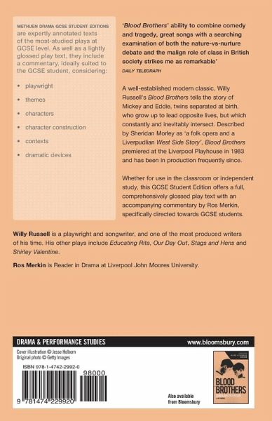 Written specifically for GCSE students by academics in the field, the Methuen Drama GCSE Student Editions provide in-depth explanatory material alongside the play texts frequently studied at Key Stage 4. Whether for use in the classroom or independent study, these editions offer a fully comprehensive and lightly glossed play text with accompanying notes specifically directed towards readers of this age, which unravel essential topics and challenge all students to delve further into literary analysis. A well established modern classic, Willy Russell's Blood Brothers tells the story of Mickey and Eddie, twins separated at birth who grow up to lead very opposite lives, but which constantly and inevitably intersect. In addition to some on-page explanatory notes and the play text, this edition contains sub-headed analyses of themes, characters, context and dramatic devices, as well as background information on the playwright. The Methuen Drama GCSE Student Editions never lose sight of their readership, and offer students the confidence to engage with the material, explore their own interpretations, and improve their understanding of the works.