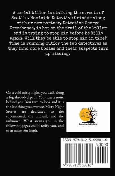 A serial killer is on the streets of Seatlle. Homicide Detevtive Grinder is trying to unravel the mystery and find the killer before he strikes again. Her new partner, Detective George Crossbones, is hot on the trail of the killer and is trying to stop him before he kills again. Will they be able to stop him in time? Time is running outfor the two detectives as they find more bodies and their suspects turn up missing.