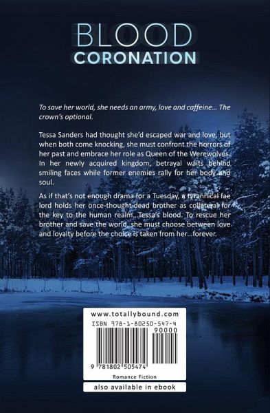 To save her world, she needs an army, love and caffeine... The crown's optional. Tessa Sanders had thought she'd escaped war and love, but when both come knocking, she must confront the horrors of her past and embrace her role as Queen of the Werewolves. In her newly acquired kingdom, betrayal waits behind smiling faces while former enemies rally for her body and soul. As if that's not enough drama for a Tuesday, a tyrannical fae lord holds her once-thought-dead brother as collateral for the key to the human realm...Tessa's blood. To rescue her brother and save the world, she must choose between love and loyalty before the choice is taken from her...forever.