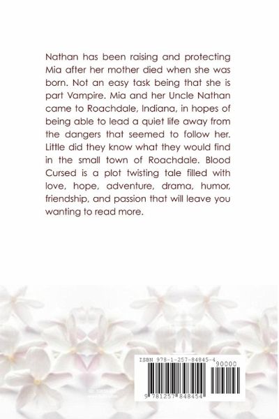 Nathan has been raising and protecting Mia after her mother died when she was born. Not an easy task being that she is part Vampire. Mia and her Uncle Nathan came to Roachdale, Indiana, in hopes of being able to lead a quiet life away from the dangers that seemed to follow her. Little did they know what they would find in the small town of Roachdale. Blood Cursed is a plot twisting tale filled with love, hope, adventure, drama, humor, friendship, and passion that will leave you wanting to read more.