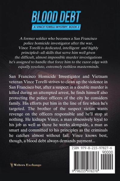 San Francisco Homicide Investigator and Vietnam veteran Vince Torelli strives to clean up the violence in San Francisco but, after a suspect in a double murder is killed during an attempted arrest, he finds himself also protecting the police officers of the city he considers family. His efforts put him in the line of fire when he's targeted. The brother of the suspect victim wants revenge on the officers responsible and he'll stop at nothing. He kidnaps Vince, a man obsessively loyal to his job as well as those he works alongside, a man as smart and committed to his principles as the criminals he catches almost without fail. Vince knows best, though, a blood debt always demands payment...