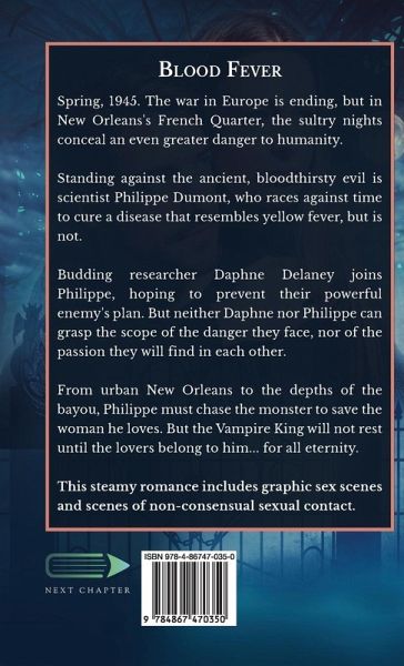 Spring, 1945. The war in Europe is ending, but in New Orleans's French Quarter, the sultry nights conceal an even greater danger to humanity. Standing against the ancient, bloodthirsty evil is scientist Philippe Dumont, who races against time to cure a disease that resembles yellow fever, but is not. Budding researcher Daphne Delaney joins Philippe, hoping to prevent their powerful enemy's plan. But neither Daphne nor Philippe can grasp the scope of the danger they face, nor of the passion they will find in each other. From urban New Orleans to the depths of the bayou, Philippe must chase the monster to save the woman he loves. But the Vampire King will not rest until the lovers belong to him... for all eternity. This steamy romance includes graphic sex scenes and scenes of non-consensual sexual contact.¿