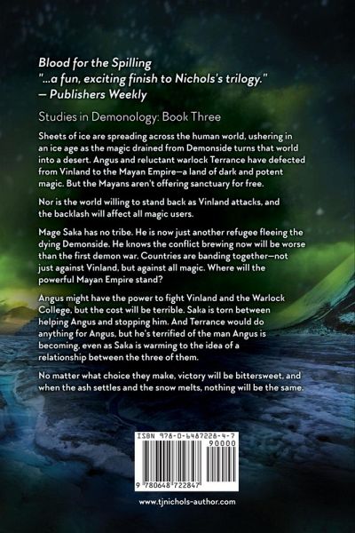 Sheets of ice are spreading across the human world, ushering in an ice age as the magic drained from Demonside turns that world into a desert. Angus and reluctant warlock Terrance have defected from Vinland to the Mayan Empire--a land of dark and potent magic. But the Mayans aren't offering sanctuary for free. Nor is the world willing to stand back as Vinland attacks, and the backlash will affect all magic users. Mage Saka has no tribe. He is now just another refugee fleeing the dying Demonside. He knows the conflict brewing now will be worse than the first demon war. Countries are banding together--not just against Vinland, but against all magic. Where will the powerful Mayan Empire stand? Angus might have the power to fight Vinland and the Warlock College, but the cost will be terrible. Saka is torn between helping Angus and stopping him. And Terrance would do anything for Angus, but he's terrified of the man Angus is becoming, even as Saka is warming to the idea of a relationship between the three of them. No matter what choice they make, victory will be bittersweet, and when the ash settles and the snow melts, nothing will be the same.