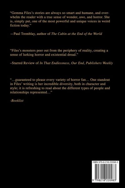 Angels and insects, holes in the known world's fabric and what comes out of them, the love of death and the death of love. In award-winning horror author Gemma Files's seventh collection of short fiction, the numinous and the awful tango together through a collapsing series of not-so-alternate realities, and everyone they touch emerges changed, whether or not they may have wanted to be. This is fantasy of the darkest sort, horror-cured, marinating in its own transformative juices. So enter a fractured universe of creepy delights, one where the oldest tropes are turned inside out and wrung for their oddest components, as forgotten gods and monsters cavort beneath a storm of BLOOD FROM THE AIR. Formerly a film critic, journalist, screenwriter and teacher, Gemma Files has been an award-winning horror author since 1999. She has published five collections of short work, three collections of speculative poetry, a Weird Western trilogy, a story-cycle and a stand-alone novel (Experimental Film, which won the 2015 Shirley Jackson Award for Best Novel and the 2016 Sunburst Award for Best Adult Novel). Her collection In That Endlessness, Our End won both the Bram Stoker Award and the This Is Horror Award in that category for 2021.