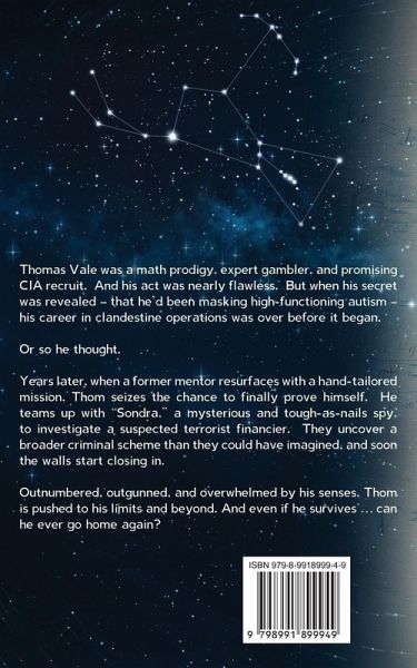 WINNER of the Silver Medal in the BookFest Awards in two categories: THRILLER / ESPIONAGE and MYSTERY / ESPIONAGE Thomas Vale was a math prodigy, expert gambler, and promising CIA recruit. And his act was nearly flawless. But when his secret was revealed - that he'd been masking high-functioning autism - his career in clandestine operations was over before it began. Or so he thought. Years later, when a former mentor resurfaces with a hand-tailored mission, Thom seizes the chance to finally prove himself. He teams up with "Sondra," a mysterious and tough-as-nails spy, to investigate a suspected terrorist financier. They uncover a broader criminal scheme than they could have imagined, and soon the walls start closing in. Outnumbered, outgunned, and overwhelmed by his senses, Thom is pushed to his limits and beyond. And even if he survives ... can he ever go home again? This is the first book in a series of high-octane thrillers featuring an autistic protagonist. This series proudly portrays high-masking autism with authenticity, and includes co-protagonists from a number of underrepresented backgrounds including LGBTQ+, BIPOC, neurodiversity, and physical disability. There is an emphasis on realistic portrayals of science, technology, and espionage tradecraft.