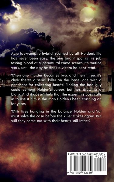 As a fae-vampire hybrid, scorned by all, Holden's life has never been easy. The one bright spot is his job testing blood at supernatural crime scenes. It's routine work, until the day he finds a victim he can't read. When one murder becomes two, and then three, it's clear there's a serial killer on the loose-one with a penchant for collecting hearts. Finding the bad guy could cement Holden's career, but he's drawing a blank. And it doesn't help that the expert his boss calls in to assist him is the man Holden's been crushing on for years. With lives hanging in the balance, Holden and Val must solve the case before the killer strikes again. But will they come out with their hearts still intact?