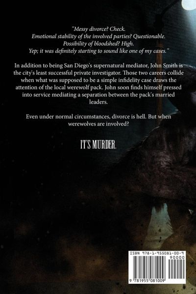 "Messy divorce? Check. Emotional stability of the involved parties? Questionable. Possibility of bloodshed? High. Yep... it was definitely starting to sound like one of my cases." In addition to being San Diego's supernatural mediator, John Smith is the city's least successful private investigator. Those two careers collide when what was supposed to be a simple infidelity case draws the attention of the local werewolf pack. John soon finds himself pressed into service mediating a separation between the pack's married leaders. Even under normal circumstances, divorce is hell. But when werewolves are involved? It's murder.