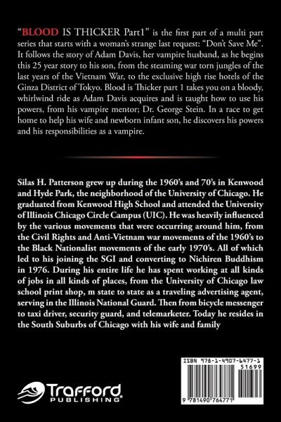 "BLOOD IS THICKER Part1" is the first part of a multi part series that starts with a woman's strange last request: "Don't Save Me". It follows the story of Adam Davis, her vampire husband, as he begins this 25 year story to his son, from the steaming war torn jungles of the last years of the Vietnam War, to the exclusive high rise hotels of the Ginza District of Tokyo. Blood is Thicker part 1 takes you on a bloody, whirlwind ride as Adam Davis acquires and is taught how to use his powers, from his vampire mentor; Dr. George Stein. In a race to get home to help his wife and newborn infant son, he discovers his powers and his responsibilities as a vampire.