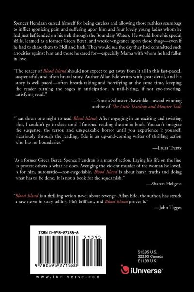 Spencer Hendran cursed himself for being careless and allowing those ruthless scumbags to inflict agonizing pain and suffering upon him and four lovely young ladies whom he had just befriended on his trek through the Boundary Waters. He would hone his special skills, learned as a former Green Beret, and wreak vengeance upon those thugs--even if he had to chase them to Hell and back. They would rue the day they had committed such atrocities aginst him and those he cared for--especially Marna with whom he had fallen in love.