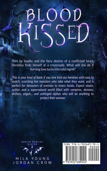Torn by loyalty and the fiery desires of a conflicted heart, Veronica finds herself at a crossroads. What will she do if burning love turns into cold regret? This is your kind of book if you love kick-ass heroines with sass to match, scorching hot monsters who take what they want, and is perfect for devourers of enemies to lovers books. Expect steam, action, and a supernatural world filled with vampires, demons, shifters, angels... and unhinged alphas who will do anything to protect their woman. Lovers of Anita Blake and True Blood, this is your next addiction. Blood Kissed is the third book in the Chosen Vampire Slayer series.