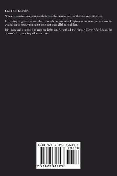 Love bites. Literally. When two ancient vampires lose the love of their immortal lives, they lose each other, too. Everlasting vengeance follows them through the centuries. Forgiveness can never come when the wounds are so fresh, yet it might soon cost them all they hold dear. Join Raisa and Sinistre, but keep the lights on. As with all the Happily-Never-After books, the dawn of a happy ending will never come.