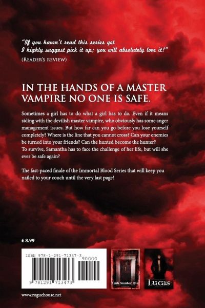 Part Three of Immortal Blood Series. In the hands of a master vampire no one is safe... Sometimes a girl has to do what a girl has to do. Even if it means siding with the devilish master vampire, who obviously has some anger management issues. But how far can you go before you lose yourself completely? Where is the line that you cannot cross? Can your enemies be turned into your friends? Can the hunted become the hunter? To survive, Samantha has to face the challenge of her life, but will she ever be safe again? The fast-paced finale of the Immortal Blood Series that will keep you nailed to your couch until the very last page!