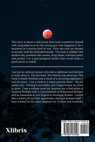 This story is about a doll house that Leah created for herself with misguided love for the wrong guy who happens to be a murderer in a psycho kind of way. How she took on charges of murder until she defended herself. The book is riddled with modern day problems like racism, drug abuse, criminal justice and protest. It is a psychological thriller that would make a good movie to watch.