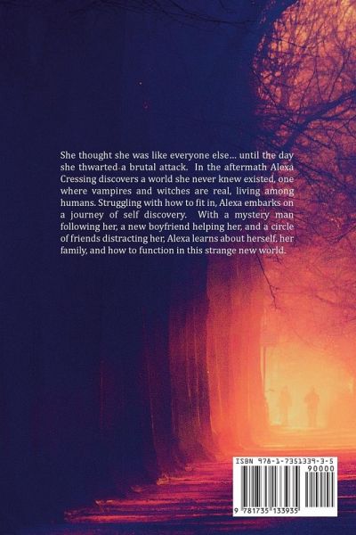 She thought she was like everyone else... until the day she thwarted a brutal attack. In the aftermath Alexa Cressing discovers a world she never knew existed, one where vampires and witches are real, living among humans. Struggling with how to fit in, Alexa embarks on a journey of self discovery. With a mystery man following her, a new boyfriend helping her, and a circle of friends distracting her, Alexa learns about herself, her family, and how to function in this strange new world.