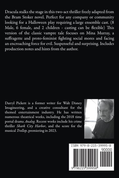 Dracula stalks the stage in this two-act thriller freely adapted from the Bram Stoker novel. Perfect for any company or community looking for a Halloween play requiring a large ensemble cast. (8 Male, 6 female, and 2 children - casting can be flexible) This version of the classic vampre tale focuses on Mina Murray, a suffragette and proto-feminist fighting social mores and facing an encroaching force for evil.Suspenseful, smart, and surprising.Includes production notes and hints from the author.
