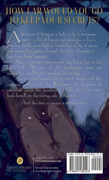HOW FAR ARE YOU WILLING TO GO TO KEEP YOUR SECRETS?After years of living as a lady in the Givensmir court-a life of luxury and opulence-Eve's past has slowly come back to haunt her. One of secrets and magic that courses through her veins, thought to have been long forgotten.Now, a princess lies mysteriously dead before her in the great hall.The eyes of the duplicitous court are everywhere.And there is nowhere left to hide.In a realm known for its witch hunts and the ongoing conflict with the Blackthorn, the kingdom of witchcraft across the treacherous Dallise Sea, Eve now finds herself on the wrong side of this war.And the time to escape is running out.
