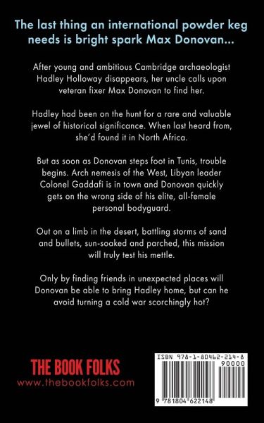 The last thing an international powder keg needs is bright spark Max Donovan... After young and ambitious Cambridge archaeologist Hadley Holloway disappears, her uncle calls upon veteran fixer Max Donovan to find her. Hadley had been on the hunt for a rare and valuable jewel of historical significance. When last heard from, she'd found it in North Africa. But as soon as Donovan steps foot in Tunis, trouble begins. Arch nemesis of the West, Libyan leader Colonel Gaddafi is in town and Donovan quickly gets on the wrong side of his elite, all-female personal bodyguard. Out on a limb in the desert, battling storms of sand and bullets, sun-soaked and parched, this mission will truly test his mettle. Only by finding friends in unexpected places will Donovan be able to bring Hadley home, but can he avoid turning a cold war scorchingly hot? BLOOD ON THE SANDS is the fourth standalone thriller in the Max Donovan adventures series. The full list of books is as follows: 1. ONE BEATS THE BUSH 2. WITH TOOTH AND NAIL 3. THE SERPENT'S LAIR 4. BLOOD ON THE SANDS All are available with Kindle Unlimited and in paperback, as is the author's unputdownable standalone action thriller MURDER MOUNTAIN.