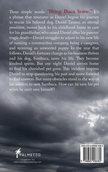 Three simple words: "Bring Buca home." It's a phrase that resonates as Daniel begins his journey to rescue his beloved dog. Daniel Tanner, an eternal pessimist, moves back to his childhood home to care for his grandfather, who raised Daniel after his parents' tragic death-Daniel struggles to adjust to his new life of running a construction company, being a caregiver, and receiving an unwanted puppy. In the year that follows, Daniel's fortunes change as his business thrives and his dog, Sambuca, saves his life. They become kindred spirits. But one night Daniel arrives home to find his cherished pet gone. This incident inspires Daniel to stop questioning his past and move forward to find answers. But many obstacles stand in the way of his mission to save Sambuca. How can he save his pet when he can't save himself?