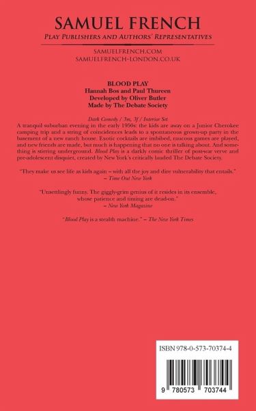 A tranquil suburban evening in the early 1950′s: the kids are away on a Junior Cherokee camping trip and a string of coincidences leads to a spontaneous grown-up party in the basement of a new ranch house. Exotic cocktails are imbibed, raucous games are played, and new friends are made, but much is happening that no one is talking about. And something is stirring underground. Blood Play is a darkly comic thriller of post-war verve and pre-adolescent disquiet, created by New York's criti