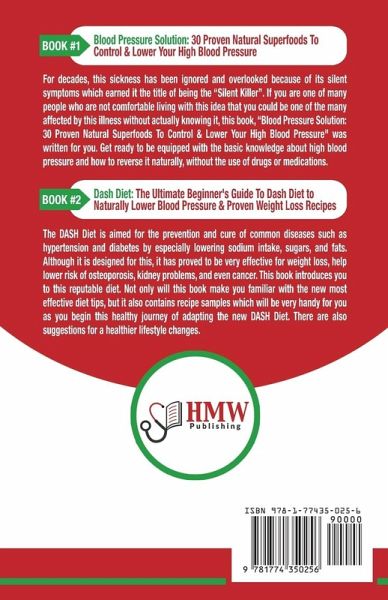 2 BOOKS IN 1 BOOK BOOK #1 > Blood Pressure Solution: 30 Proven Natural Superfoods To Control & Lower Your High Blood Pressure For decades, this sickness has been ignored and overlooked because of its silent symptoms which earned it the title of being the "Silent Killer". If you are one of many people who are not comfortable living with this idea that you could be one of the many affected by this illness without actually knowing it, this book, "Blood Pressure Solution: 30 Proven Natural Superfoods To Control & Lower Your High Blood Pressure" was written for you. Get ready to be equipped with the basic knowledge about high blood pressure and how to reverse it naturally, without the use of drugs or medications. BOOK #2 > Dash Diet: The Ultimate Beginner's Guide To Dash Diet to Naturally Lower Blood Pressure & Proven Weight Loss Recipes The DASH Diet is aimed at the prevention and cure of common diseases such as hypertension and diabetes by especially lowering sodium intake, sugars, and fats. Although it is designed for this, it has proved to be very effective for weight loss, helps lower risk of osteoporosis, kidney problems, and even cancer. This book introduces you to this reputable diet. Not only will this book make you familiar with the new most effective diet tips, but it also contains recipe samples which will be very handy for you as you begin this healthy journey of adapting the new DASH Diet. There are also suggestions for a healthier lifestyle change.