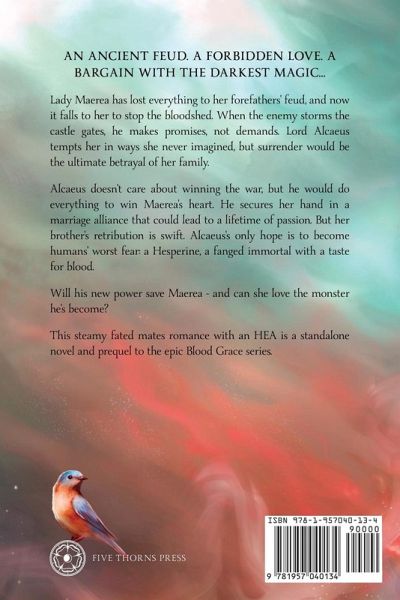 An ancient feud. A forbidden love. A bargain with the darkest magic... Lady Maerea has lost everything to her forefathers' feud, and now it falls to her to stop the bloodshed. When the enemy storms the castle gates, he makes promises, not demands. Lord Alcaeus tempts her in ways she never imagined, but surrender would be the ultimate betrayal of her family. Alcaeus doesn't care about winning the war, but he would do everything to win Maerea's heart. He secures her hand in a marriage alliance that could lead to a lifetime of passion. But her brother's retribution is swift. Alcaeus's only hope is to become humans' worst fear: a Hesperine, a fanged immortal with a taste for blood. Will his new power save Maerea - and can she love the monster he's become? This steamy fated mates romance with an HEA is a standalone novel and prequel to the epic Blood Grace series.