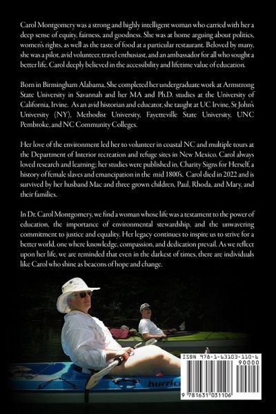 Carol Montgomery was a strong and highly intelligent woman who carried with her a deep sense of equity, fairness, and goodness. She was at home arguing about politics, women's rights, as well as the taste of food at a particular restaurant. Beloved by many, she was a pilot, avid volunteer, travel enthusiast, and an ambassador for all who sought a better life. Carol deeply believed in the accessibility and lifetime value of education. Born in Birmingham Alabama, She completed her undergraduate work at Armstrong State University in Savannah and her MA and Ph.D. studies at the University of California, Irvine. As an avid historian and educator, she taught at UC Irvine, St John's University (NY), Methodist University, Fayetteville State University, UNC Pembroke, and NC Community Colleges. Her love of the environment led her to volunteer in coastal NC and multiple tours at the Department of Interior recreation and refuge sites in New Mexico. Carol always loved research and learning; her studies were published in, Charity Signs for Herself, a history of female slaves and emancipation in the mid 1800's. Carol died in 2022 and is survived by her husband Mac and three grown children, Paul, Rhoda, and Mary, and their families. In Dr. Carol Montgomery, we find a woman whose life was a testament to the power of education, the importance of environmental stewardship, and the unwavering commitment to justice and equality. Her legacy continues to inspire us to strive for a better world, one where knowledge, compassion, and dedication prevail. As we reflect upon her life, we are reminded that even in the darkest of times, there are individuals like Carol who shine as beacons of hope and change.