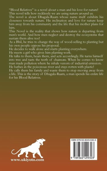 "Blood Relatives" is a novel about a man and his love for nature! This novel tells how recklessly we are using nature around us. The novel is about Dhagala-Raam whose name itself exhibits his closeness towards nature. His inclination and love for nature keep him away from his community and the life that his mother plans for him. This Novel is the reality that shows how nature is departing from men's world. And how men neglect and destroy the ecosystems that sustain them alive too! As a Bhil, he tries to change the way of wood-selling to planting but his own people oppose his proposal. He decides to walk alone and starts planting everywhere. He meets a girl who gives him planting work. He talks to them, hears them, and acts accordingly. He turns himself into tree and tasts the teeth of chainsaw. When he comes to know man made pollution where he inhale venom of industrial emission. He bathes in the poisonous river and stays rotten with plastic! He calls them his family and wants them to stop moving away from a life. This is the story of Dhagala-Raam, a man spends his entire life for his Blood Relatives.