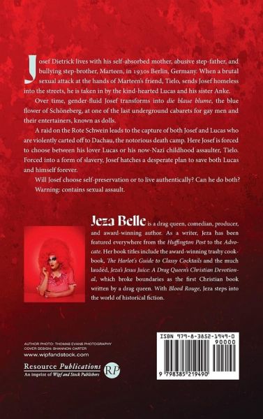 Josef Dietrick lives with his self-absorbed mother, abusive step-father, and bullying step-brother, Marteen, in 1930s Berlin, Germany. When a brutal sexual attack at the hands of Marteen's friend, Tielo, sends Josef homeless into the streets, he is taken in by the kind-hearted Lucas and his sister Anke. Over time, gender-fluid Josef transforms into die blaue blume, the blue flower of Schoneberg, at one of the last underground cabarets for gay men and their entertainers, known as dolls. A raid on the Rote Schwein leads to the capture of both Josef and Lucas who are violently carted off to Dachau, the notorious death camp. Here Josef is forced to choose between his kind-hearted lover Lucas or his now-Nazi childhood assaulter, Tielo. Forced into a form of slavery, Josef hatches a desperate plan to save both Lucas and himself forever. Will Josef choose self-preservation or to live authentically? Can he do both? Warning: contains sexual assault.