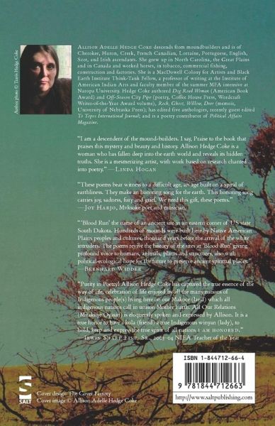 Allison Adelle Hedge Coke descends from moundbuilders and is of Cherokee, Creek, Huron, Metis, French Canadian, Lorraine, Portuguese, Irish, English, and Scot ascendants. Raised in North Carolina, the Plains and Canada, she previously worked horses, fields, waters, and factories. A fellow of the Weymouth Center for the Arts & Humanities, Black Earth Institute (emeritus), Salon Ada, and The Center for Great Plains Institute.