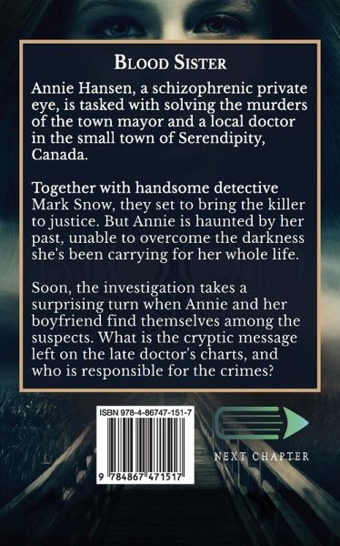 Annie Hansen, a schizophrenic private eye, is tasked with solving the murders of the town mayor and a local doctor in the small town of Serendipity, Canada. Together with handsome detective Mark Snow, they set to bring the killer to justice. But Annie is haunted by her past, unable to overcome the darkness she's been carrying for her whole life. Soon, the investigation takes a surprising turn when Annie and her boyfriend find themselves among the suspects. What is the cryptic message left on the late doctor's charts, and who is responsible for the crimes?