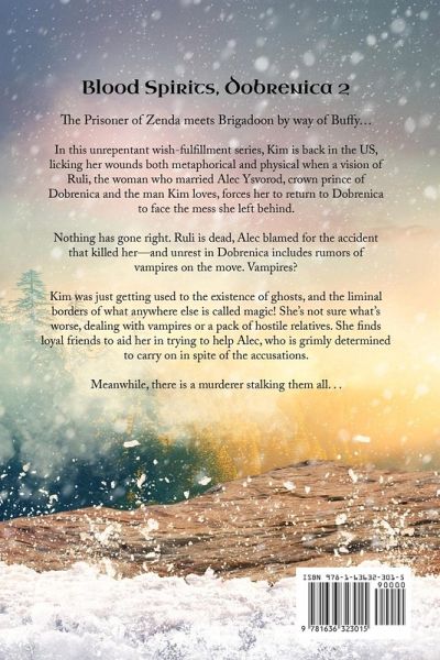 The Prisoner of Zenda meets Brigadoon by way of Buffy... In this unrepentant wish-fulfillment series, Kim is back in the US, licking her wounds both metaphorical and physical when a vision of Ruli, the woman who married Alec Ysvorod, crown prince of Dobrenica and the man Kim loves, forces her to return to Dobrenica to face the mess she left behind. Nothing has gone right. Ruli is dead, Alec blamed for the accident that killed her-and unrest in Dobrenica includes rumors of vampires on the move. Vampires? Kim was just getting used to the existence of ghosts, and the liminal borders of what anywhere else is called magic! She's not sure what's worse, dealing with vampires or a pack of hostile relatives. She finds loyal friends to aid her in trying to help Alec, who is grimly determined to carry on in spite of the accusations. Meanwhile, there is a murderer stalking them all. . .