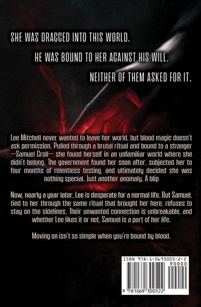 She was dragged into this world. He was bound to her against his will. Neither of them asked for it. Lee Mitchell never wanted to leave her world, but blood magic doesn't ask permission. Pulled through a brutal ritual and bound to a stranger-Samuel Groll-she found herself in an unfamiliar world where she didn't belong. The government found her soon after, subjected her to four months of relentless testing, and ultimately decided she was nothing special. Just another anomaly. A blip. Now, nearly a year later, Lee is desperate for a normal life. But Samuel, tied to her through the same ritual that brought her here, refuses to stay on the sidelines. Their unwanted connection is unbreakable, and whether Lee likes it or not, Samuel is a part of her life. Moving on isn't so simple when you're bound by blood.