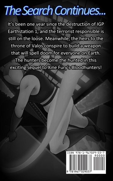 It's been one year since the destruction of IGP Earthstation 1, and the terrorist responsible is still on the loose. Meanwhile, the heirs to the throne of Valos conspire to build a weapon that will spell doom for everyone on Earth. The hunters become the hunted in this exciting sequel to Xine Fury's Bloodhunters!