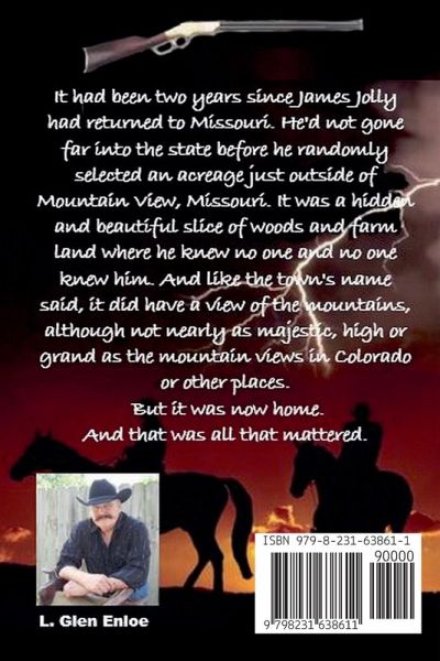 An exciting new Western in the style of A.H. Holt, Robert Thomas, and Alex Cord filled with action, adventure and plot twists such as G.P. Hutchinson, Robert Vaughan, and Chet Cunningham! This is a book that is filled with the bodies of those who would take what is his! It had been two years since James Jolly had returned to Missouri. He'd not gone far into the state before he randomly selected an acreage just outside of Mountain View, Missouri. One principled man must face those who would stop at nothing to take his whole world away from him. He is forced to kill those who stand against him-to use any force necessary to save his life. This is "BLOODLAND SHOWDOWN!" This exciting new Western from L. Glen Enloe takes the reader on a ride as rough as any you've ever ridden. As soon as Jolly knows he must stand against a tide of crime-he knows that blood will be spilled... and he'll be damned if it will be his. So if you like watching John Wayne, Robert Mitchum and reading the books of Ralph Cotton, then you'll love "Bloodland Showdown!"