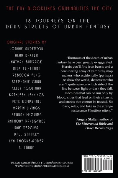 16 Journeys on the Dark Streets of Urban Fantasy. Original stories by Seanan McGuire, Joanne Anderton, Alan Baxter, Nathan Burrage, Dirk Flinthart, Rebecca Fung, Stephanie Gunn, Kelly Hoolihan, Kathleen Jennings, Pete Kempshall, Martin Livings, Anthony Panegyres, Jane Percival, Paul Starkey, Lyn Thorne-Alder and S. Zanne.