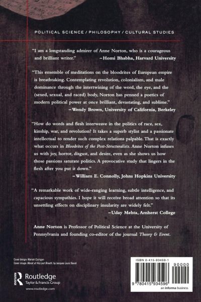 How do you write history when it's no longer linear? In Bloodrites of the Post-Structuralists, respected political theorist Anne Norton reminds us of the real interplay between words (laws, scriptures, myths, and texts), and the world of flesh. Drawing from sources as diverse as foundational myths from Sarah in the bible, Marat in his death bath, and thinkers like Hegel and Foucault, Norton reinterprets the relationship between word and flesh and places it in historical context. The French and English Revolutions, as well as the period of anti-colonialism and post-colonialism are used to frame her discussion of word and body, and their historical significance.