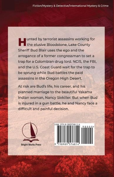 Hunted by the terrorist assassins working for the elusive Bloodstone, Lake County Sheriff Bud Blair uses the ego and arrogance of a former U. S. congressman to set a trap for a Colombian drug lord. NCIS, the FBI, and the U.S. Coast Guard wait for the trap to be sprung while Bud battles the paid assassins in the Oregon High Desert. At risk are Bud's life, his career, and his planned marriage to a beautiful Yakima Indian woman, Nancy Sixkiller. But when Bud is injured in a gun battle, he and Nancy face a difficult and painful decision.