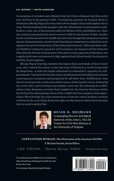 "Generations of scholars have debated why the Union collapsed in 1860-61. "Bloody Flag of Anarchy" instead turns this question on its head, asking how the fragile Union held together for so long. It grapples with this question by reexamining the nullification crisis, one of the greatest political conflicts of the antebellum era. The country, it reveals, came perilously close to civil war during the winter of 1832-33. Twenty-five thousand South Carolinians volunteered to defend the state against federal "tyranny," while President Andrew Jackson vowed to march 200,000 troops into the state to crush the incipient rebellion. Although South Carolina's radical Nullifiers claimed to speak for all "true Carolinians," the Palmetto state was bitterly divided. Forty percent of voters rejected nullification, and roughly 9,000 men volunteered to fight against their fellow South Carolinians to hold the Union together. "Bloody Flag of Anarchy" examines the hopes, anxieties, and ideals of these Union men. It argues that they viewed the Union as the "last hope of liberty" in a world dominated by despotism-as a bold yet fragile testament to humanity's capacity for self-government. They believed that the Union preserved both liberty and slavery, ensuring peace, property, and prosperity for all white men. Nullification, they feared, would provoke social and political chaos: shattering the Union, tearing the social order, and inciting an apocalyptic racial war. For some readers, this book will serve as an introduction to the nullification crisis, a pivotal yet largely forgotten moment in American history. It will also appeal to specialists in many fields of nineteenth-century American history. It reframes the nullification crisis, providing fresh insight by focusing on the internal divisions within South Carolina rather than the tension between South Carolina and the federal government. It builds on the work of Gary W. Gallagher and others who study Civil War-era Unionism by investigating what the Union meant to Americans in the Jacksonian era. It also serves as a valuable resource for historians of gender, as I foreground the ways both parties deployed conceptions of manhood to mobilize their voters. Many Union men, it reveals, pushed back against nullification by appealing to moderate manhood, insisting that "true men" would protect their families from the horrors of disunion. Finally, scholars of transatlantic history will benefit from the book's analysis of the connections between nullification and the European revolutions of 1830. Union men, it contends, viewed the nullification crisis against the backdrop of global history, and they feared America might fail at the very moment the world needed its example the most"--
