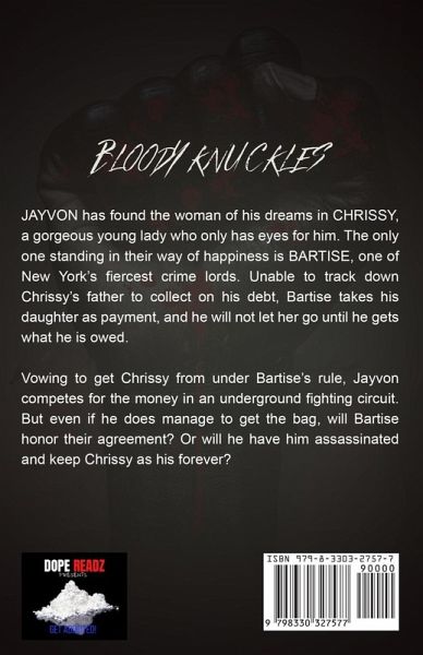 JAYVON has found the woman of his dreams in CHRISSY, a gorgeous young lady who only has eyes for him. The only one standing in their way of happiness is BARTISE, one of New York's fiercest crime lords. Unable to track down Chrissy's father to collect on his debt, Bartise takes his daughter as payment, and he will not let her go until he gets what he is owed. Vowing to get Chrissy from under Bartise's rule, Jayvon competes for the money in an underground fighting circuit. But even if he does manage to get the bag, will Bartise honor their agreement? Or will he have him assassinated and keep Chrissy as his forever?