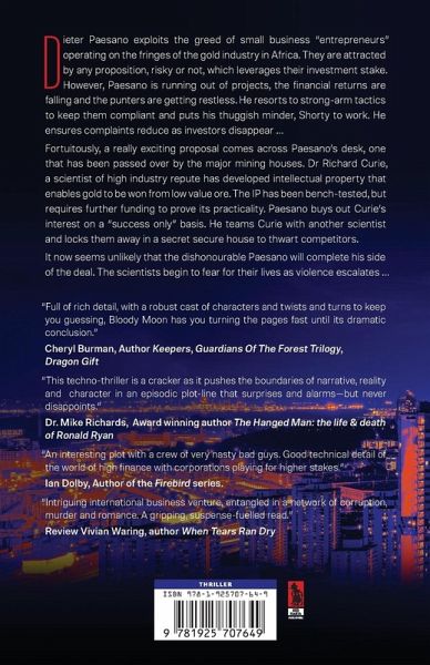 Dieter Paesano exploits the greed of small business "entrepreneurs" operating on the fringes of the gold industry in Africa. They are attracted by any proposition, risky or not, which leverages their investment stake. However, Paesano is running out of projects, the financial returns are falling and the punters are getting restless. He resorts to strong-arm tactics to keep them compliant and puts his thuggish minder, Shorty to work. He ensures complaints reduce as investors disappear ... Fortuitously, a really exciting proposal comes across Paesano's desk, one that has been passed over by the…mehr