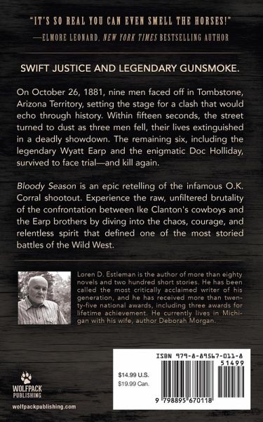 SWIFT JUSTICE AND LEGENDARY GUNSMOKE. On October 26, 1881, nine men faced off in Tombstone, Arizona Territory, setting the stage for a clash that would echo through history. Within fifteen seconds, the street turned to dust as three men fell, their lives extinguished in a deadly showdown. The remaining six, including the legendary Wyatt Earp and the enigmatic Doc Holliday, survived to face trial-and kill again. Bloody Season is an epic retelling of the infamous O.K. Corral shootout. Experience the raw, unfiltered brutality of the confrontation between Ike Clanton's cowboys and the Earp brothers by diving into the chaos, courage, and relentless spirit that defined one of the most storied battles of the Wild West. Buy your copy of this action-packed Western today! "Pistol-hot...a revisionist Western classic!" -Kirkus Reviews
