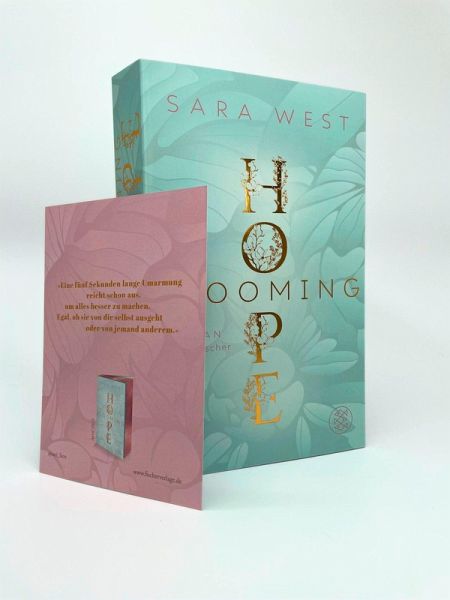 Das Cover von „Blooming Hope“ ist ein absoluter Traum. Ich habe mich sofort verliebt als ich es das erste Mal gesehen habe. Die Farbgebung mit dem Blau und dem Rosa Farbschnitt gefällt mir wahnsinnig gut. Und auch die goldene Elemente auf dem Cover sind ein richtiger Hingucker. Zudem passt es sehr gut zum Inhalt der Geschichte. Ebenfalls wurde sich bei dem Buch auch bei der Innengestaltung sehr viel Mühe gegeben, so liebe ich die jeweiligen Kapitelüberschriften in denen man erkennen kann, aus welcher Perspektive es ist.