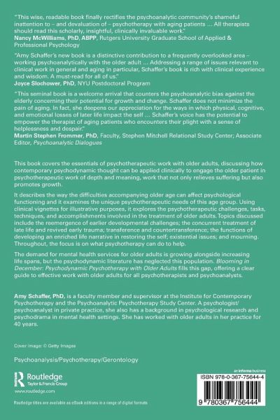 This book covers the essentials of psychotherapeutic work with older adults, discussing how contemporary psychodynamic thought can be applied clinically to engage the older patient in psychotherapeutic work of depth and meaning, work which not only relieves suffering but also promotes growth.