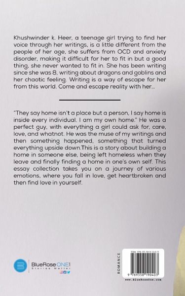 Khushwinder k. Heer, a teenage girl trying to find her voice through her writings, is a little different from the people of her age, she suffers from OCD and anxiety disorder, making it difficult for her to fit in but a good thing, she never wanted to fit in. She has been writing since she was 8, writing about dragons and goblins and her chaotic feeling. Writing is a way of escape for her from this world. Come and escape reality with her...