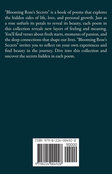 "Blooming Rose's Secrets" is a book of poems that explores the hidden sides of life, love, and personal growth. Just as a rose unfurls its petals to reveal its beauty, each poem in this collection reveals new layers of feeling and meaning. You'll find verses about fresh starts, moments of passion, and the deep connections that shape our lives. "Blooming Rose's Secrets" invites you to reflect on your own experiences and find beauty in the journey. Dive into this collection and uncover the secrets hidden in each poem.