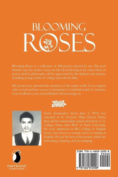 Blooming Roses is a collection of 108 poems selected by me. The poet himself says his creative verses are like blood flowing in his veins. Ideas of poetry and his philosophy will be appreciated by the thinkers and citizens, including young youths of college and schools alike. His poems have attracted the attention of the entire world. So we request only to read and have across to Sumirasko's wonderful world of creations. Your feedback to me and publishers will encourage us.