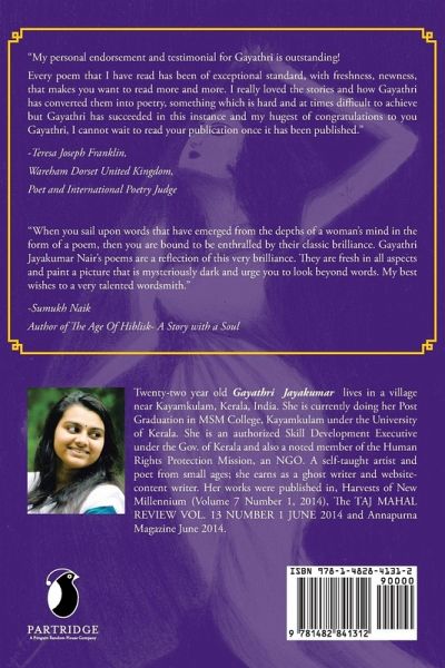 A compendium of pictures and verses form the sinews of this book. Pictures speak and words portray what comes out of the delicate balance between fantasy and reality. No emotion finds partiality in this collection, every emotion gets its own chance in its brilliant intensity. If you are in love with a single or mild emotion, this book might not be for you.